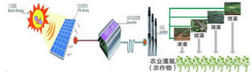 太陽能光伏揚水技術是目前把太陽能技術應用在農業(yè)水利的最先進技術之一,具有就地開發(fā)、低碳環(huán)保、建設和維護成本低廉等優(yōu)點,使用期限25年,運行成本僅為柴油機成本的13%、市電成本的21%,兩年左右就可收回全部成本,后期無任何維護費用,達到零成本運行,真正的低碳環(huán)保、利民惠民。