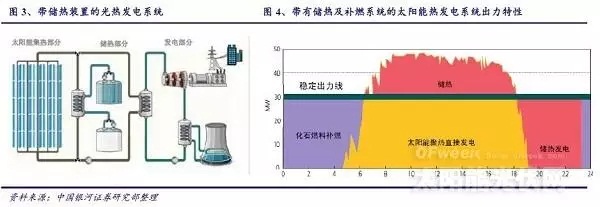 儲熱:光熱電站可配置蓄熱系統(tǒng),在白天把一部分太陽能轉(zhuǎn)化成熱能儲存在蓄熱系統(tǒng)中,在夜間沒有光照或白天陽光被云層遮擋的時候?qū)⑿顭嵯到y(tǒng)中儲存的熱能用于發(fā)電來實現(xiàn)連續(xù)的電力輸出。同時也可以使電力輸出更加平滑、出力的波動性更小!