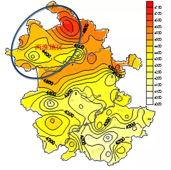 圖6:安徽省太陽能資源分布圖(單位:兆焦/平方米)