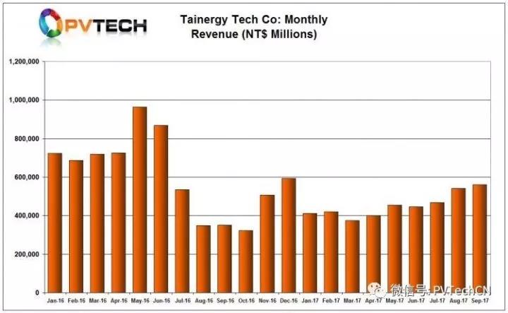 太極能源公布其九月份銷售額約為5.6億新臺幣(約合1.844億美元),環(huán)比上月的5.41億新臺幣有所增長。