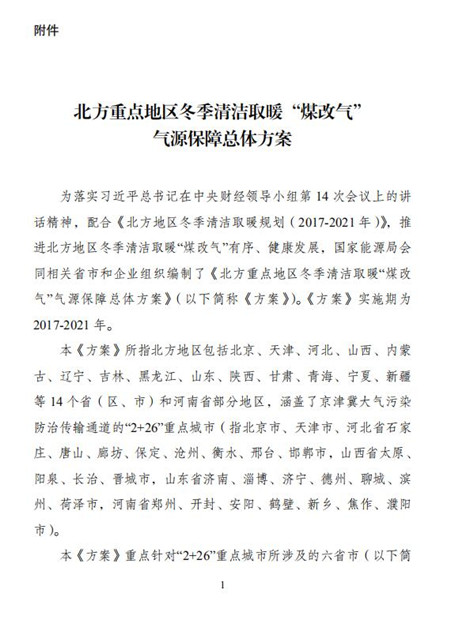 關于印發(fā)北方地區(qū)冬季清潔取暖規(guī)劃 (2017-2021年)的通知