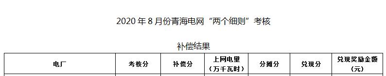2020年8月份陜西、寧夏、青海電網“兩個細則”考核補償情況公布