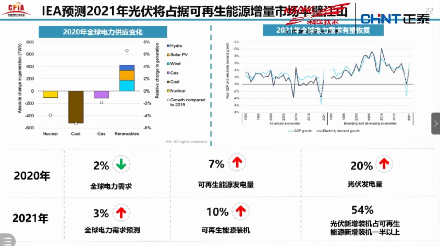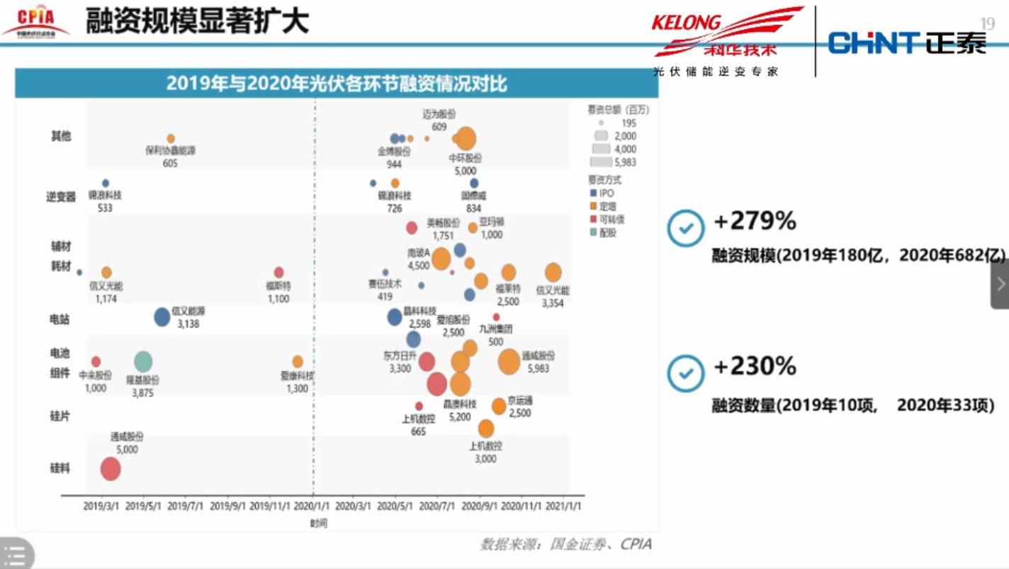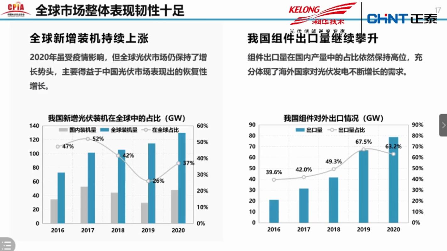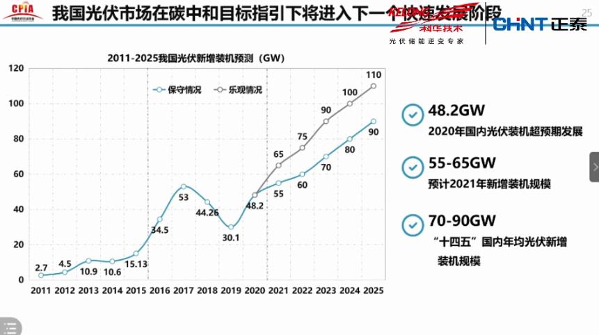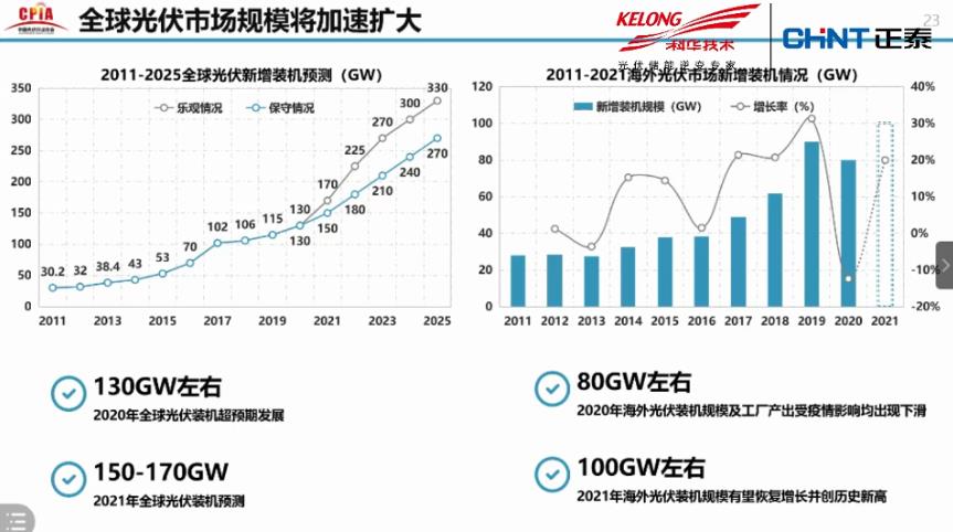 2月3日,由中國(guó)光伏行業(yè)協(xié)會(huì)主辦的“光伏行業(yè)2020年發(fā)展回顧與2021年形勢(shì)展望研討會(huì)”在線上召開(kāi),中國(guó)光伏行業(yè)協(xié)會(huì)副理事長(zhǎng)兼秘書長(zhǎng)王勃華就2020年光伏行業(yè)行業(yè)回顧與2021年形勢(shì)展望做出匯報(bào)。2020年我國(guó)光伏新增裝機(jī)規(guī)模48.2GW,同比增漲60%,累計(jì)光伏裝機(jī)規(guī)模達(dá)253GW。2020年1-11月戶用累計(jì)新增裝機(jī)規(guī)模10.1GW,1-11月戶用