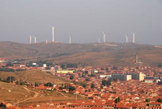 9月下旬,海拔高度在1501米至1861米之間的內(nèi)蒙古烏蘭察布市化德縣,草原已漸漸枯黃,農(nóng)田里的作物正在被一茬茬地收割,馬驢穿梭于其中覓食,不時(shí)有雄鷹和喜鵲掠過,初秋的雨更讓這一切多了幾分清冷的味道。遠(yuǎn)遠(yuǎn)望去,一座座矗立的風(fēng)機(jī)宛如巨陣,分布于曲折的山脊上,在凜冽的風(fēng)中不停地旋轉(zhuǎn)。