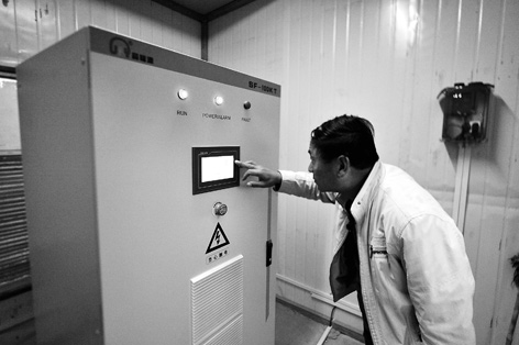 在山西省吉縣屯里鎮(zhèn)窯渠村村口的荒地上,一座占地3.3畝的光伏電站格外顯眼:10排光伏發(fā)電板整齊劃一,400塊藍(lán)色多晶硅組件在太陽(yáng)的照射下閃閃發(fā)光;配電室內(nèi),一條條電纜從四面八方匯聚到一起,源源不斷地將電流傳輸?shù)搅穗娋W(wǎng)……“從今年1月7號(hào)并網(wǎng),到現(xiàn)在這個(gè)電站已經(jīng)發(fā)電12萬(wàn)多度。”窯渠村黨支部書(shū)記劉創(chuàng)立說(shuō)。