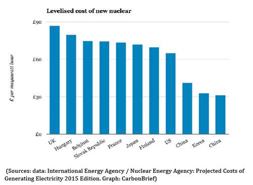 圖1:主要國家的核電平均發(fā)電成本比較。英國的核電成本最高,為89.5英鎊/MWh。