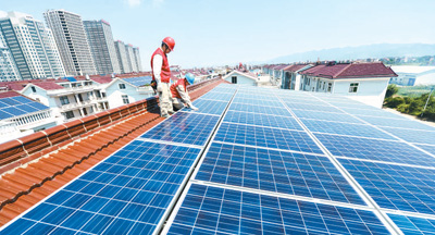 金華東陽(yáng)市:一塊塊深藍(lán)色的家庭發(fā)電光伏板鑲嵌在紅瓦白墻的小洋房之上,組成一道獨(dú)特的風(fēng)景。王從航攝