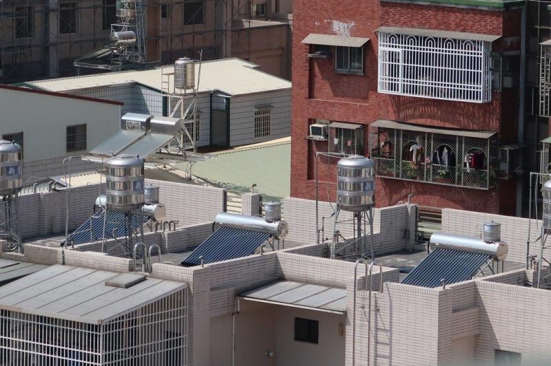 屏東縣一年日照超過300天,不少民眾會在屋頂裝設(shè)太陽能熱水器,不過縣府鼓勵另裝設(shè)太陽能發(fā)電設(shè)備,拓展綠能。記者翁禎霞/攝影