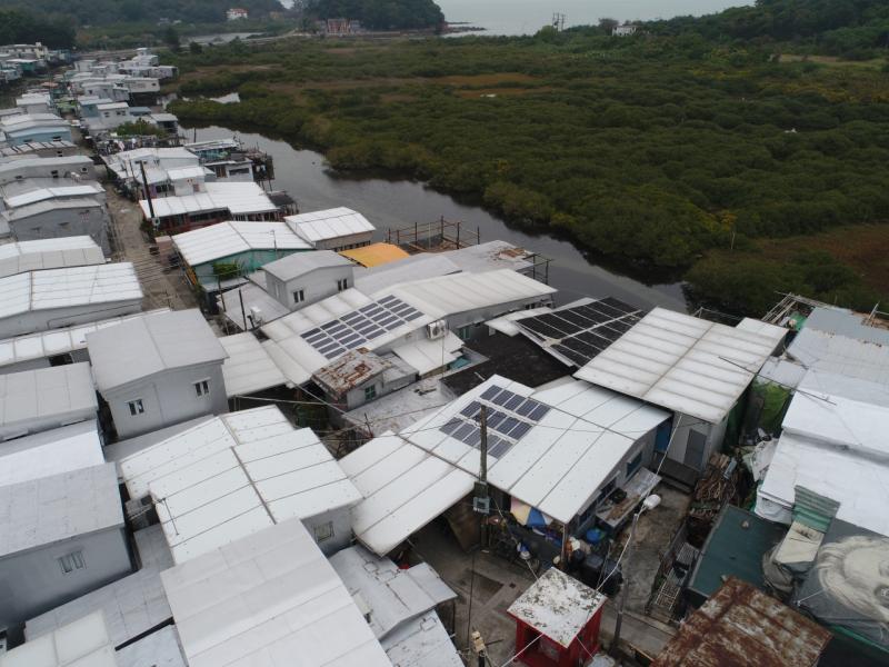 基金會于去年6月開展“小區(qū)太陽能發(fā)電計劃”,先在大澳的三間面向西南方棚屋作試點,全數(shù)資助用戶安裝太陽能光伏板。(WWF提供)