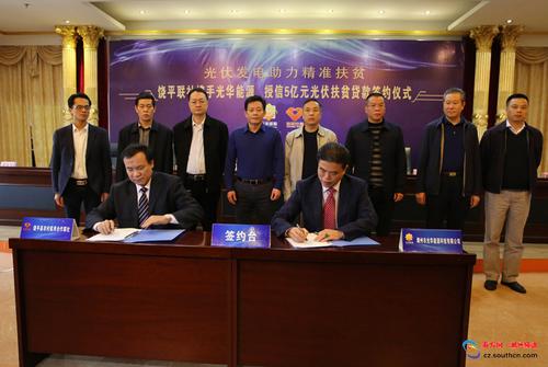 當日,潮州市光華能源技術(shù)有限公司和饒平農(nóng)村信用合作聯(lián)社攜手,在饒平縣農(nóng)信大樓舉行光伏發(fā)電精準扶貧項目授信5億元簽約儀式。雙方將通過‘科技+金融’的模式,聯(lián)合推進光伏發(fā)電精準扶貧項目。