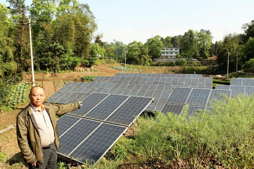 劉華介紹太陽能光伏板。納溪宣傳部供圖