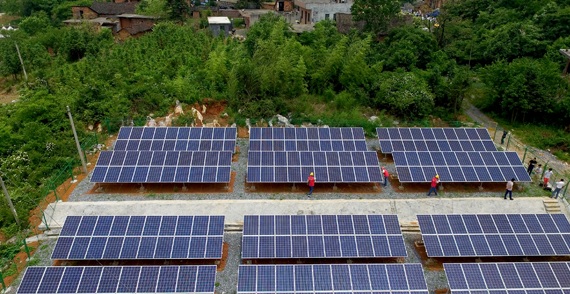 5月29日,電力部門工作人員在桂陽縣歐陽海鎮(zhèn)增家源村光伏發(fā)電站察看發(fā)電情況。該發(fā)電站裝機(jī)容量為63.6千瓦,可實(shí)現(xiàn)日均發(fā)電180度,每年可為村里創(chuàng)造6萬元的經(jīng)濟(jì)效益,幫助村民實(shí)現(xiàn)脫貧致富。去年,該縣通過政府擔(dān)保貸款方式,在36個(gè)貧困村建了39個(gè)光伏發(fā)電站,目前所有發(fā)電站正陸續(xù)投入使用。(歐陽常海 張躍平 攝