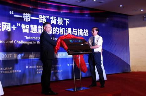 圖為青海中歐能源互聯(lián)網(wǎng)研究院揭牌!≈行律缬浾 張?zhí)砀?攝