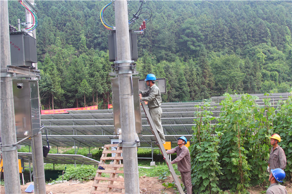 “嗡—”隨著技術人員最后一個環(huán)節(jié)的完成,一陣電流音響起,6月23日下午13點,在黃家村的后山上,茅箭區(qū)第一個光伏扶貧電站成功并網(wǎng)發(fā)電!