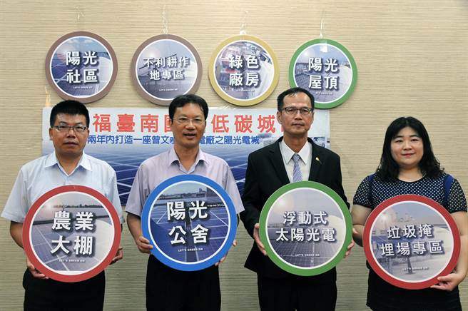 除在建筑物上設置太陽能光電系統(tǒng),經(jīng)發(fā)局也推動水域型浮動式太陽能,希望增加設置空間。(臺南市經(jīng)發(fā)局提供)