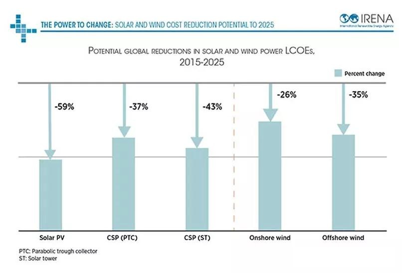 到2025年,光伏、光熱、陸上和海上風(fēng)電成本將大幅度下降: