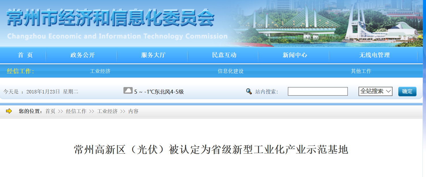 1月22日,第七批江蘇省新型工業(yè)化產業(yè)示范基地名單公布,全省8個產業(yè)園區(qū)被認定為省級新型工業(yè)化產業(yè)示范基地,我市常州高新區(qū)(光伏)位列其中。截至目前,我市共有省級以上新型工業(yè)化產業(yè)示范基地8家,其中國家級2家。