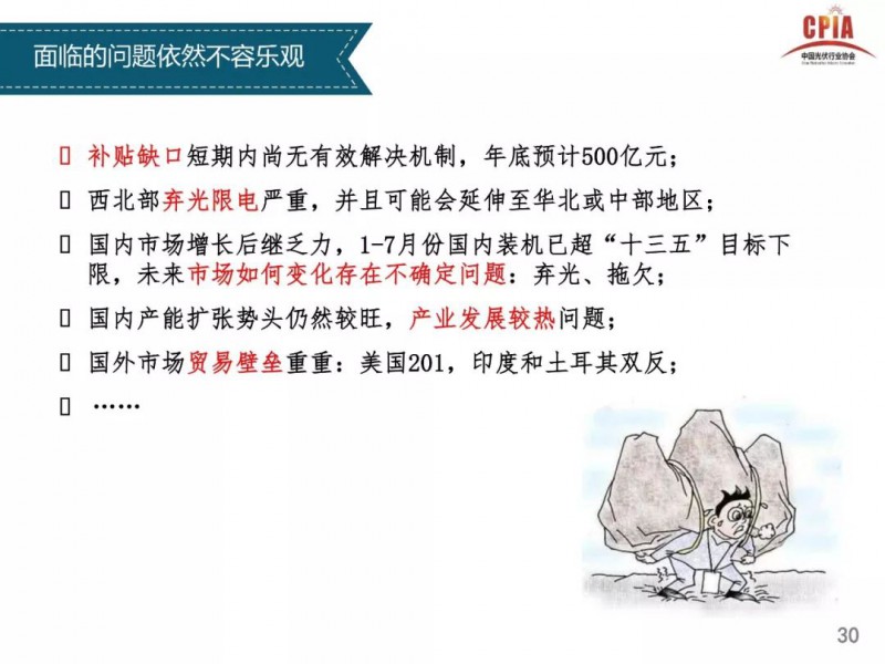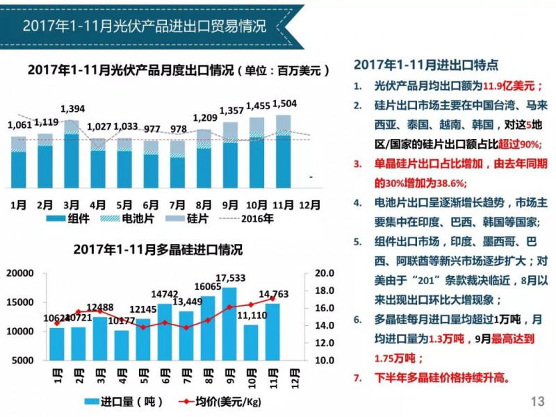 2018年1月24日,中國光伏行業(yè)協(xié)會(huì)主辦的光伏行業(yè)2017年回顧與2018年展望研討會(huì)在京召開。中國光伏行業(yè)協(xié)會(huì)秘書長王勃華總結(jié)了從多晶硅、硅片、電池片、組件、逆變器到下游戶用光伏、分布式光伏、領(lǐng)跑者項(xiàng)目以及集中式光伏的發(fā)展情況,同時(shí)對(duì)2018年的發(fā)展前景進(jìn)行了預(yù)測(cè)。中國光伏行業(yè)協(xié)會(huì) 副理事長兼秘書長2017年全年行業(yè)