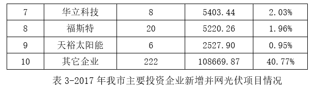表4-2017年我市各區(qū)縣新增戶用項目并網(wǎng)情況