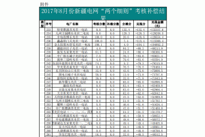 2017年8月份新疆電網(wǎng)“兩個細(xì)則”考核補償結(jié)果公示: