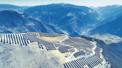 建在高山之巔的小金縣美興鎮(zhèn)大壩口太陽(yáng)能光伏發(fā)電項(xiàng)目。曹帥攝