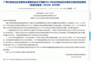 7月23日,廣西發(fā)改委發(fā)布通知稱,根據(jù)《國(guó)家發(fā)展改革委國(guó)家能源局關(guān)于完善光伏發(fā)電規(guī)模管理和實(shí)行競(jìng)爭(zhēng)方式配置項(xiàng)目的指導(dǎo)意見》(發(fā)改能源〔2016〕1163號(hào))和《廣西壯族自治區(qū)發(fā)展和改革委員會(huì)關(guān)于2017年普通光伏電站新增建設(shè)規(guī)模初步安排的通知》(桂發(fā)改能源〔2017〕1525號(hào))等文件要求,為充分用好國(guó)家安排我區(qū)光伏電站年度建設(shè)規(guī)模,現(xiàn)對(duì)2017年光伏電站初步建設(shè)方案項(xiàng)目進(jìn)行調(diào)整。