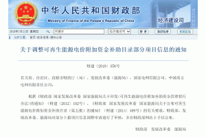 財(cái)政部調(diào)整166個(gè)可再生能源電價(jià)附加資金補(bǔ)助目信息