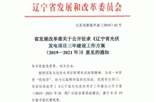 8月12日,遼寧省發(fā)改委發(fā)布關(guān)于公開征求《遼寧省光伏發(fā)電項目三年建設(shè)工作方案(2019-2021年)》意見的通知!锻ㄖ诽岢觯2019-2021年再啟動總裝機規(guī)模不超過100萬千瓦的“重點項目”開工建設(shè),并根據(jù)接網(wǎng)條件列入2019年光伏發(fā)電平價上網(wǎng)項目計劃。在統(tǒng)籌考慮風(fēng)電和光伏發(fā)電項目新增規(guī)模,確保不出現(xiàn)嚴重棄風(fēng)、棄光問題的前提下,充分挖掘光伏消納能力,重視推進遼西北貧困地區(qū)光伏發(fā)電項目投資落地見效,力爭到2021年底,全省光伏投產(chǎn)目標(biāo)達到510萬千瓦左右。