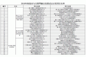 附件:2019年制造業(yè)與互聯(lián)網(wǎng)融合發(fā)展試點(diǎn)示范項(xiàng)目名單