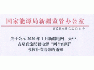 公示| 2020年1月吉泉直流配套電源“兩個細則”考核補償結果
