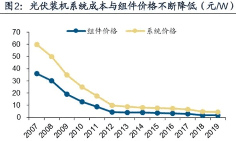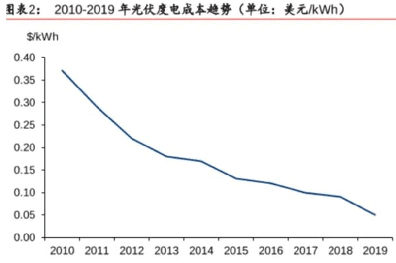光伏發(fā)電規(guī)?焖僭鲩L,得益于成本不斷下降和實(shí)現(xiàn)平價(jià)上網(wǎng),即光伏發(fā)電成本可與常規(guī)火電持平。國家電網(wǎng)預(yù)計(jì),2020年光伏度電成本0.24元-0.5元,部分地方成本已低于火電成本。
