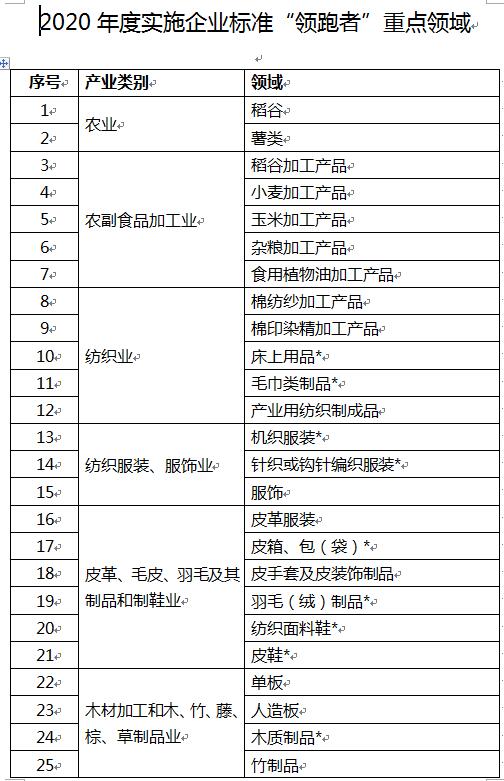 公告稱:為貫徹落實(shí)《市場(chǎng)監(jiān)管總局等八部門關(guān)于實(shí)施企業(yè)標(biāo)準(zhǔn)“領(lǐng)跑者”制度的意見》(國市監(jiān)標(biāo)準(zhǔn)〔2018〕84號(hào)),市場(chǎng)監(jiān)管總局會(huì)同國務(wù)院有關(guān)部門根據(jù)國家相關(guān)規(guī)劃,結(jié)合產(chǎn)業(yè)發(fā)展實(shí)際以及有關(guān)部門和地方需求,統(tǒng)籌考慮企業(yè)標(biāo)準(zhǔn)自我聲明公開情況、消費(fèi)者關(guān)注程度、標(biāo)準(zhǔn)對(duì)產(chǎn)品和服務(wù)質(zhì)量提升效果,研究制定了《2020年度實(shí)施企業(yè)標(biāo)準(zhǔn)“領(lǐng)跑者”重點(diǎn)領(lǐng)域》,現(xiàn)予以公告。