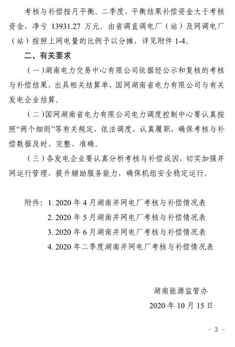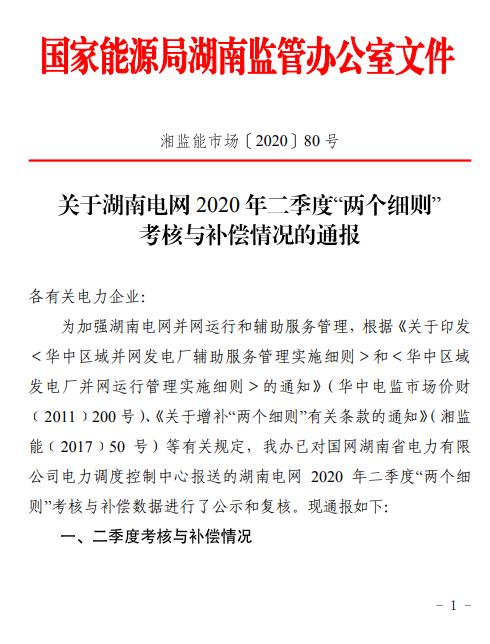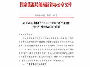 關(guān)于湖南電網(wǎng)2020年二季度“兩個細則”考核與補償情況的通報