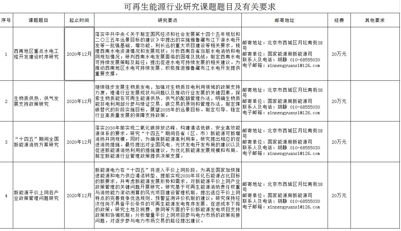 附件:1. 可再生能源行業(yè)研究課題題目及有關要求