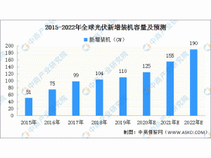 數(shù)據(jù)顯示,2015年以來全球光伏電站投資超過50GW,光伏行業(yè)重新進入快速發(fā)展階段;2016年全球新增光伏裝機77GW,2017年更達到102GW,同比增長了39.7%,累計裝機容量超過400GW.2018年光伏行業(yè)盡管受到美國“201法案”、印度“safeguard”和中國“5·31政策”的不利影響,但是全球裝機規(guī)模依然保持了至少95GW的新增規(guī)模。根據(jù)相關(guān)預測,2021年全球光伏新增裝機有望達155GW,到2022年達到190GW。