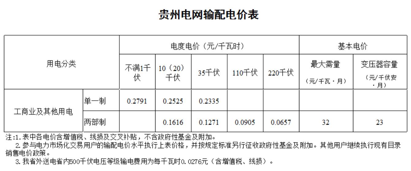 附件:1.貴州電網(wǎng)輸配電價表
