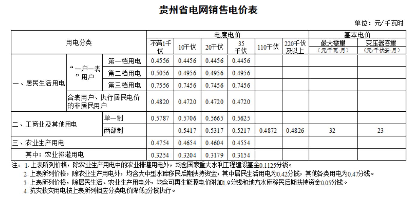 2.貴州省電網(wǎng)銷售電價表