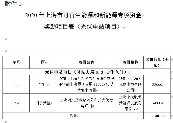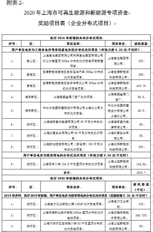 上海公示2020年度可再生能源專項(xiàng)資金獎勵名單,其中光伏項(xiàng)目290個(gè)