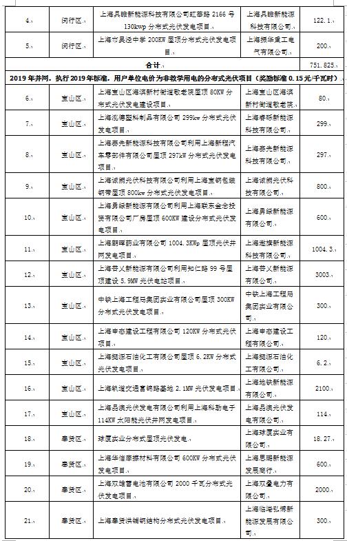 上海市發(fā)展和改革委員會29日發(fā)布2020年度可再生能源和新能源發(fā)展專項(xiàng)資金獎勵目錄(草案)公示,其中,光伏項(xiàng)目290個(gè)。詳情如下:根據(jù)《上海市可再生能源和新能源發(fā)展專項(xiàng)資金扶持辦法》(滬發(fā)改能源〔2016〕136號)、《上海市可再生能源和新能源發(fā)展專項(xiàng)資金扶持辦法(2020版)》(滬發(fā)改規(guī)范〔2020〕7號),市