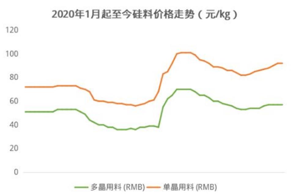受硅料漲價影響,硅片價格自2月起連續(xù)上調(diào),漲幅12~14%。