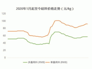 M6硅片已從2月5日起將厚度自175μm減薄至170μm。頭部硅片廠選擇減薄硅片厚度來削弱硅料漲價對單片成本的沖擊 2020H2硅料價格大幅上漲。M6硅片漲幅9%。