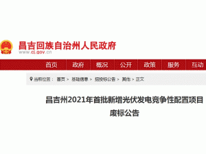 昌吉州政府網(wǎng)消息:4月13日,昌吉州發(fā)布2021年首批新增光伏發(fā)電競爭性配置項目廢標公告稱:昌吉州2021年首批新增光伏發(fā)電競爭性配置項目,于2021年4月13 日上午11:00(北京時間)在昌吉園林賓館一樓大堂吧開標,在評標過程中,有9家單位均不符合招標文件1.2.2初步評審(投資業(yè)主資格審查),因投標人不足三家,無法繼續(xù)開