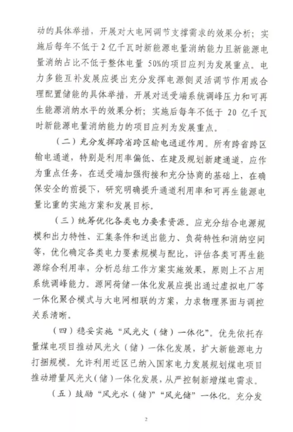 通知提出,要落實可再生能源消納能力,源網(wǎng)荷儲一體化發(fā)展應提出充分發(fā)揮負荷側調節(jié)響應能力、加強源網(wǎng)荷儲步向互動的具體舉措,開展對大電網(wǎng)調節(jié)支撐需求的效果分析,實施后每年不低于2 億千瓦時新能源電量消納能力且新能源電量消納占比不低于整體電量50%的項目應列為發(fā)展重點。電力多能互補發(fā)展應提出充分發(fā)揮電源側靈活調節(jié)作用或合理配置儲能的具體舉措,開展對送受端系統(tǒng)調峰壓力和可再生能源消納水平的效果分析,實施后每年平低于20 億千瓦時新能源電量消納能力的項目應列為發(fā)展重點。