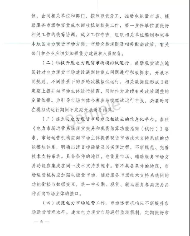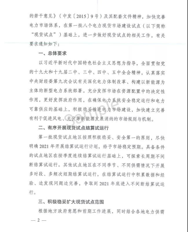 《通知》要求第一批試點區(qū)域按照積極穩(wěn)妥、安全第一的原則,盡快明確2021年試運行計劃,給予市場穩(wěn)定預(yù)期。具備條件的地區(qū),在按季度連續(xù)結(jié)算試運行基礎(chǔ)上,探索長周期不間斷結(jié)算試運行。其他地區(qū)在不同季節(jié)、不同供需條件下開展多時段、多頻次短期結(jié)算試運行,在結(jié)算試運行中積累經(jīng)驗,發(fā)現(xiàn)問題并完善,爭取2021年底進入不間斷結(jié)算試運行。