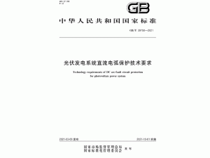 國(guó)家市場(chǎng)監(jiān)督管理總局、中國(guó)國(guó)家標(biāo)準(zhǔn)化管理委員會(huì)日前發(fā)布《光伏發(fā)電系統(tǒng)直流電弧保護(hù)技術(shù)要求》(英文標(biāo)準(zhǔn)名稱(chēng):Technology requirements of DC arc-fault circuit protection for photovoltaic power system),標(biāo)準(zhǔn)號(hào):GB/T 39750-2021,該標(biāo)準(zhǔn)將于2021年10月1日正式實(shí)施。