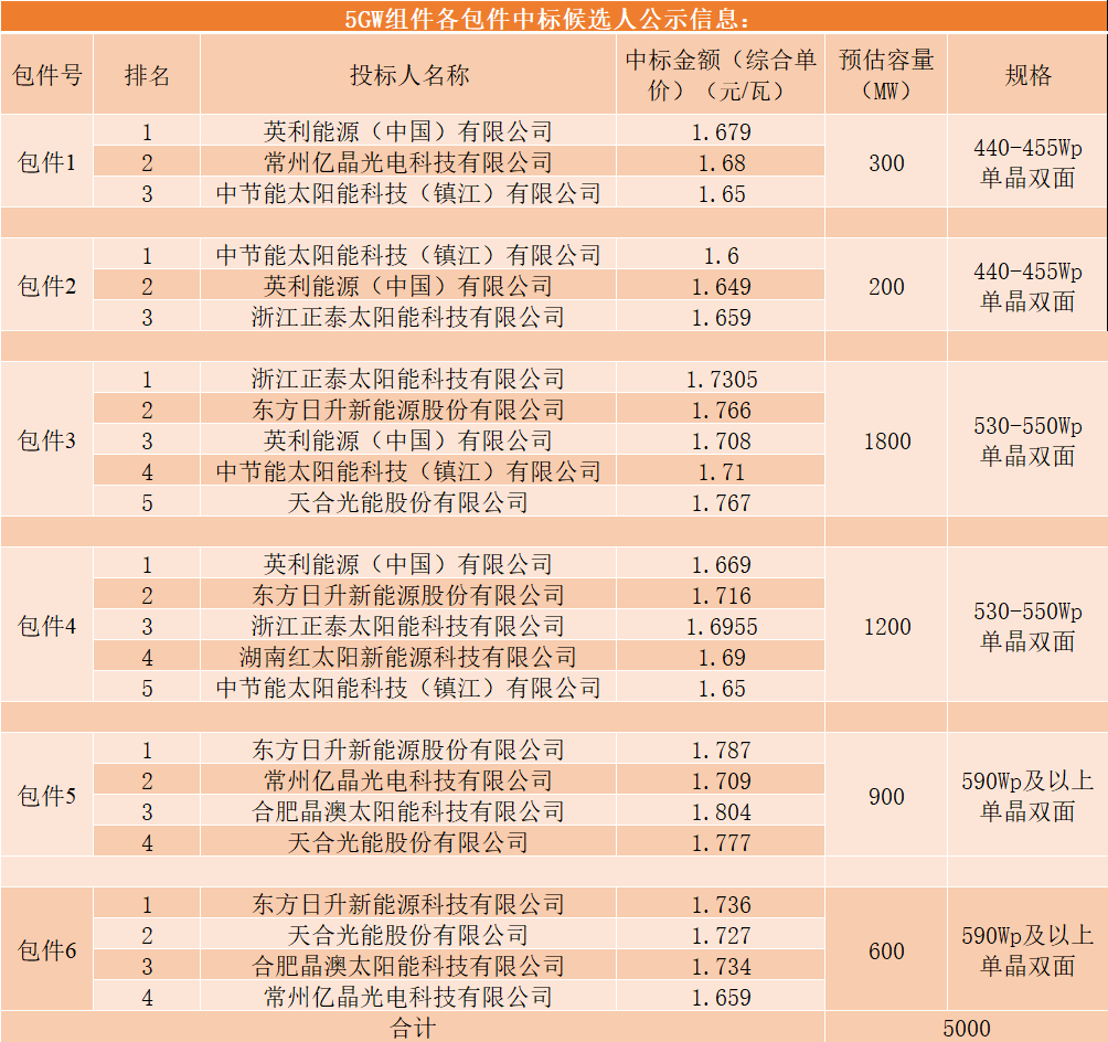5月22日-23日,中核匯能2021年5GW光伏組件設(shè)備第二次框架集中采購(gòu)與中核匯能2021年度第一次5GW逆變器框架集中采購(gòu)公示中標(biāo)候選人。據(jù)光伏們了解,中核匯能本次的組件和逆變器中標(biāo)是入圍標(biāo),未來(lái)項(xiàng)目的供貨規(guī)模會(huì)根據(jù)所有中標(biāo)候選企業(yè)協(xié)商而定。以下5GW組件、逆變器各包件中標(biāo)候選人公示信息:本次組件招標(biāo)中,440W-455W規(guī)格的雙面組件
