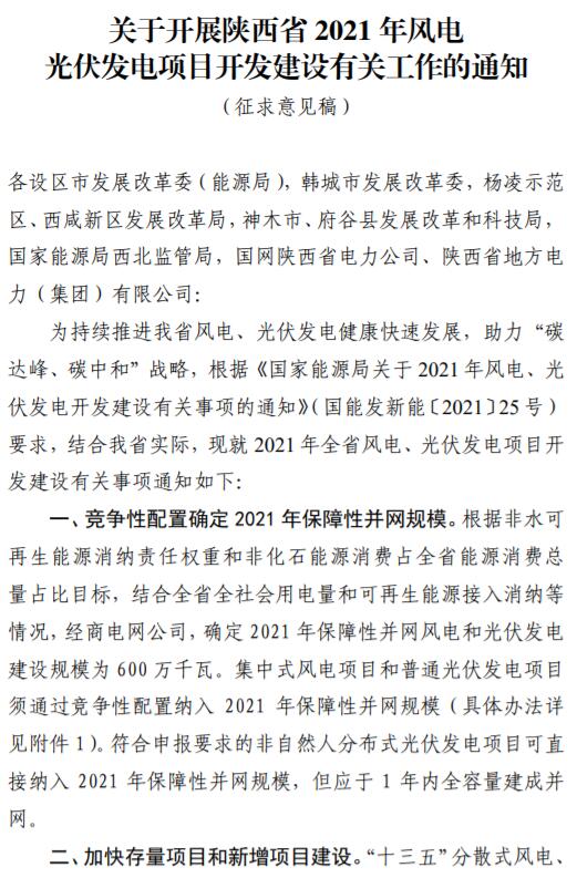 為有序推進(jìn)我省新能源項目建設(shè),陜西省能源局研究起草了《陜西省2021年風(fēng)電光伏發(fā)電項目開發(fā)建設(shè)有關(guān)工作的通知(征求意見稿)》,現(xiàn)面向社會公開征求意見。