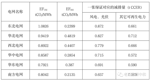 假如綠證價(jià)格為20元一張,CCER 30元一噸,那么1MWh的光伏項(xiàng)目放在東北產(chǎn)生的CCER有26.2元的收益,遠(yuǎn)高于綠證20元的收益,而放在南方則只有19.7元的收益,略低于綠證收益。所以在同等情況下,開發(fā)CCER項(xiàng)目優(yōu)先考慮東北和華北地區(qū),其它地區(qū)則優(yōu)先考慮開發(fā)綠證。各地區(qū)一張綠證對(duì)應(yīng)的減排量如下表所示: