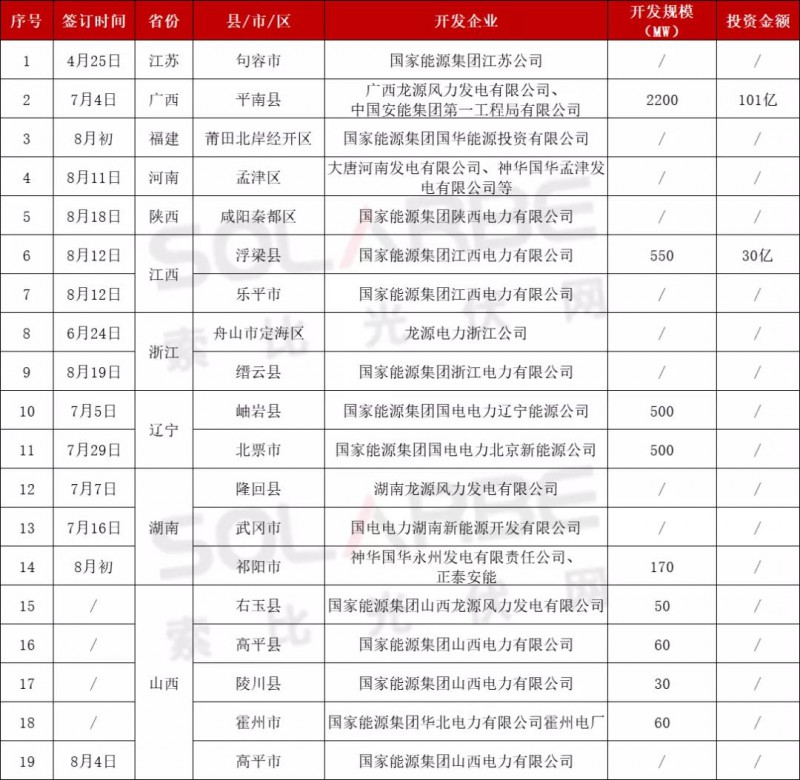 下半年,國(guó)家能源集團(tuán)“火力全開(kāi)”。7月4日,風(fēng)電龍頭龍?jiān)措娏β?lián)合安能集團(tuán)與廣西平南縣簽訂光伏發(fā)電項(xiàng)目投資開(kāi)發(fā)意向協(xié)議,計(jì)劃在黨政機(jī)關(guān)、學(xué)校、醫(yī)院、村委會(huì)等公共建筑屋頂,以及工商業(yè)廠房屋頂、農(nóng)村居民屋頂?shù),建設(shè)屋頂光伏分布式電站、儲(chǔ)能、充電樁、碳排放及綠證交易等項(xiàng)目。其中,戶用光伏、工商業(yè)分布式光伏項(xiàng)目容量分別為120萬(wàn)千瓦、100萬(wàn)千瓦,投資額預(yù)計(jì)101億元,項(xiàng)目申報(bào)成功之日起一年內(nèi)全部完成。