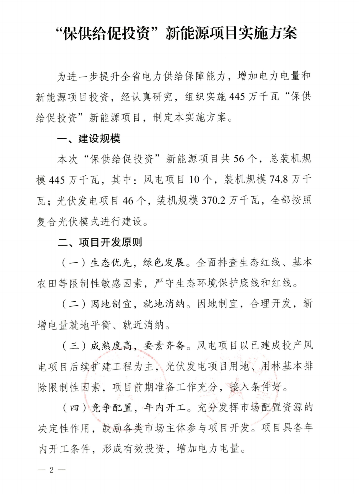 據(jù)建設(shè)規(guī)模計(jì)劃,本批“保供給促投資”新能源項(xiàng)目共56個(gè),總裝機(jī)規(guī)模445萬(wàn)千瓦,分布于13個(gè)州市。其中風(fēng)電項(xiàng)目10個(gè),裝機(jī)規(guī)模74.8萬(wàn)千瓦;光伏發(fā)電項(xiàng)目46個(gè),裝機(jī)規(guī)模370.2萬(wàn)千瓦,全部按照復(fù)合光伏模式進(jìn)行建設(shè)。